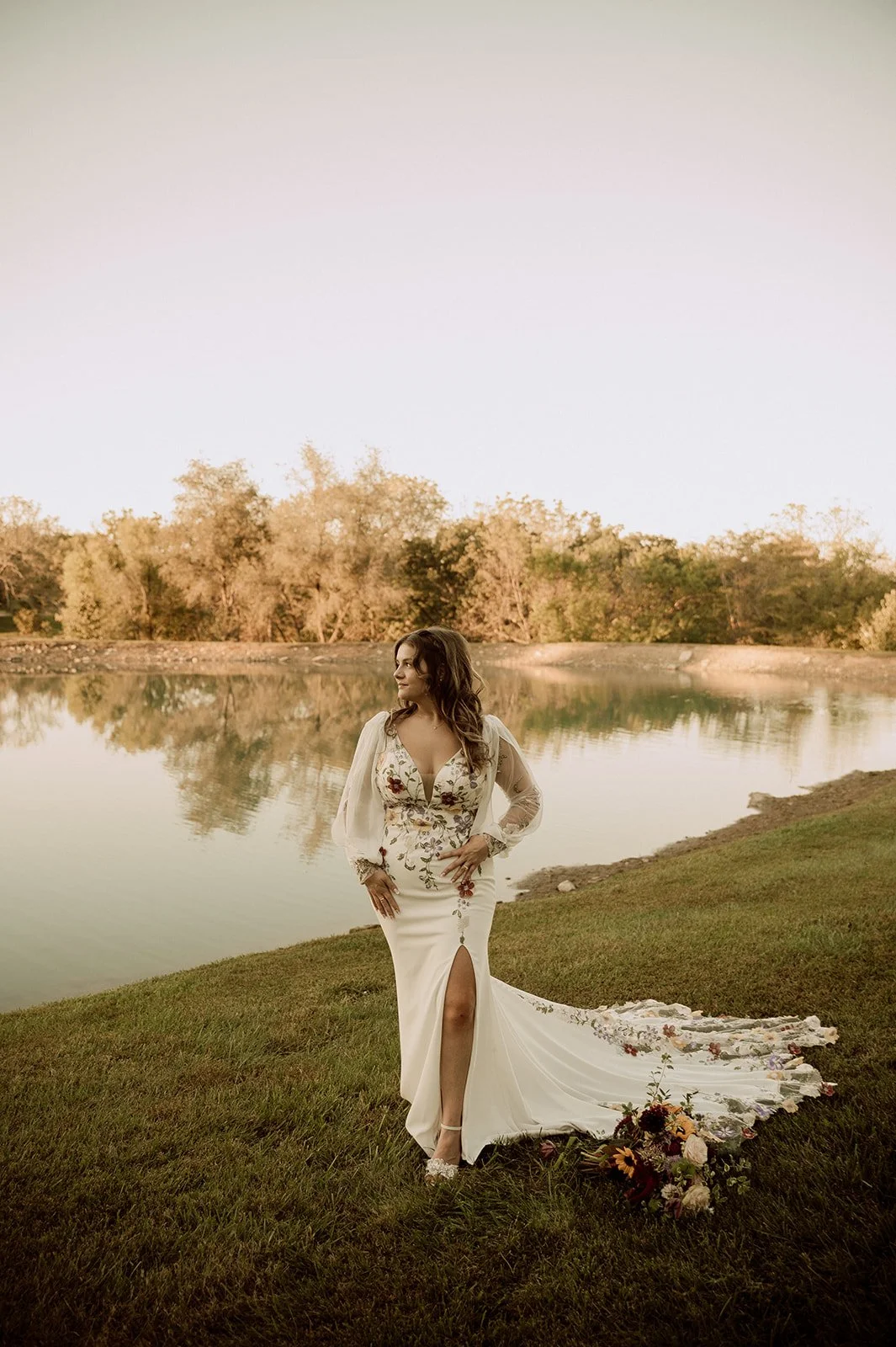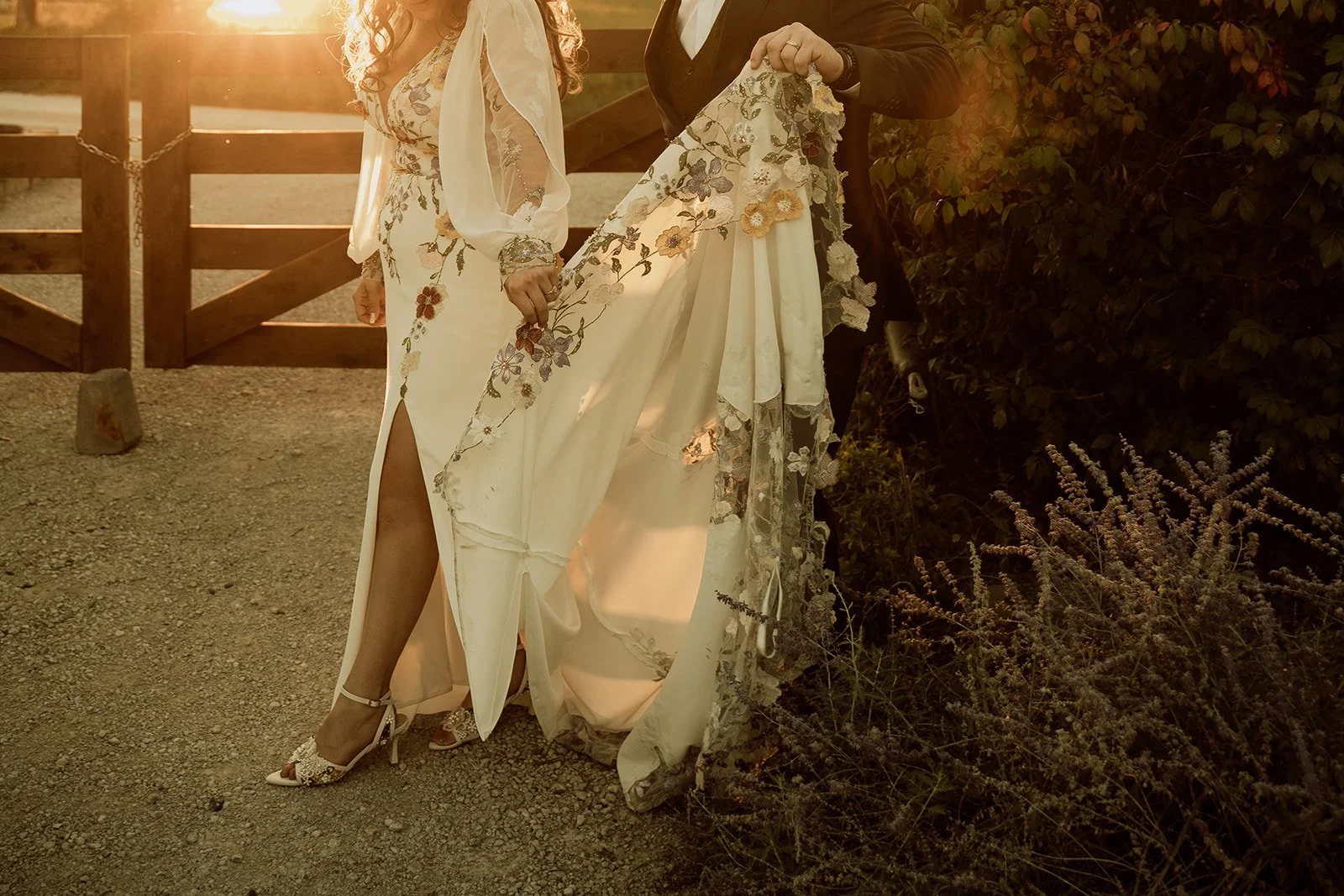 Ray wore a STUNNING non traditional wedding dress with colorful floral detailing woven through the fabric. It was sweet, beautiful, and completely her. This choice fit the feel for the entire wedding. Nothing felt forced or overly staged. Every detail felt personal and expressive. This is what many destination wedding brides, eloping brides, and micro wedding couples are looking for right now. They want a wedding that feels like them, not a checklist. And Ray’s heart was right there.