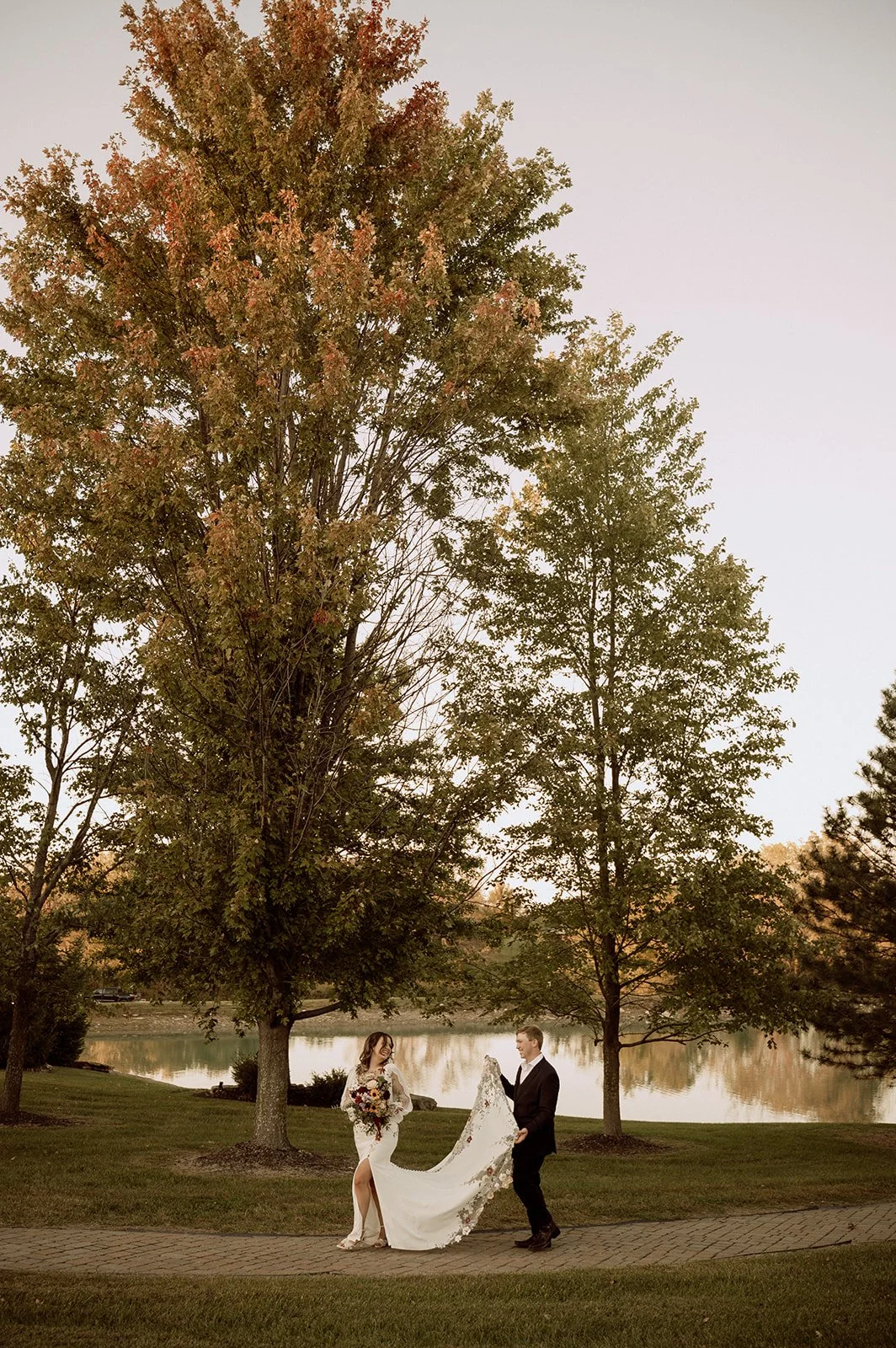 Later in the evening, we stepped away for sunset bride and groom portraits. The sky turned warm and glowing.